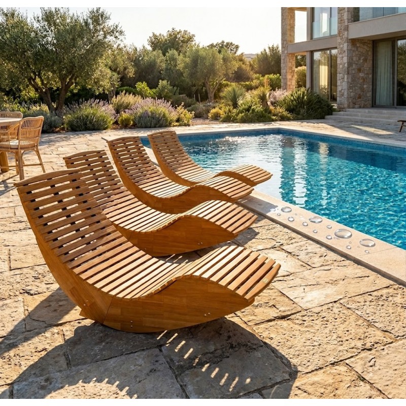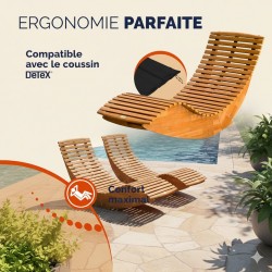 Chaise longue de sauna, transat de jardin, chaise longue à bascule, chaise de plage… un meuble multifonction avec fonction bascule intégrée.
