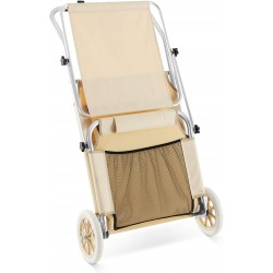 Sa housse en textile résistant est conçue pour durer : elle résiste aux déchirures, se lave facilement et sèche rapidement. Une poche intégrée dans le dossier permet de ranger livres, magazines ou effets personnels et de les protéger efficacement du sable.