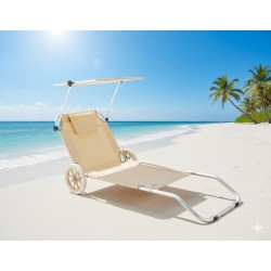 Le bain de soleil dispose d’un pare-soleil réglable offrant une protection optimale pour le visage et le haut du corps, ainsi que d’un appui-tête intégré pour un confort accru.