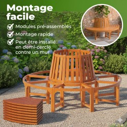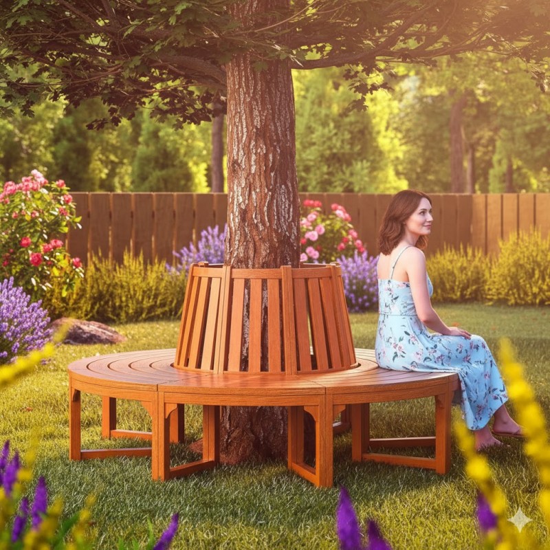 Grâce à son design rond et moderne, ce banc entoure élégamment le tronc d’un arbre et crée un espace de repos convivial et harmonieux au cœur de votre jardin.