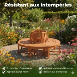Apportez une touche naturelle et raffinée à votre jardin avec ce superbe banc d’arbre circulaire en bois d’eucalyptus, un bois dur reconnu pour sa solidité et sa longévité.