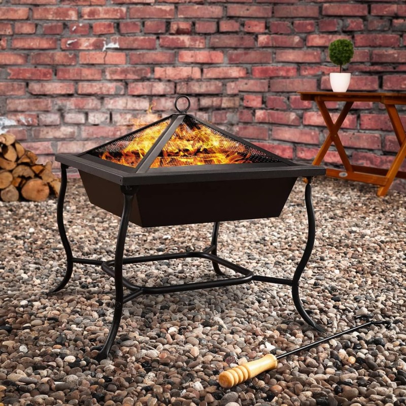 Vous pourrez profiter tranquillement du feu grâce à la grille anti-étincelles incluse. Le tisonnier est particulièrement pratique.