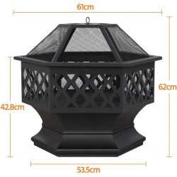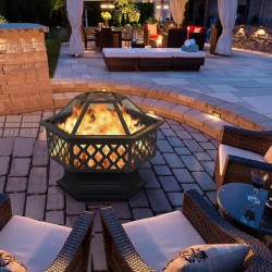 Avec ce foyer hexagonal en métal, vous profiterez de la chaleur lors des fraîches soirées d'automne et d'hiver. Sa conception spéciale permet une circulation optimale de l'air et de la chaleur, vous offrant une atmosphère chaleureuse et conviviale. Léger et facile à transporter, il s'adapte parfaitement à votre jardin, patio, ou au bord de la piscine.