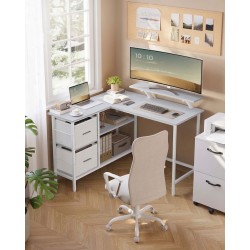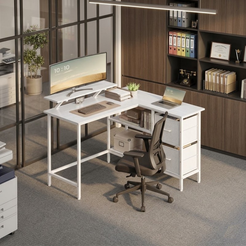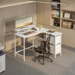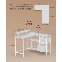 Ce bureau d’angle en forme de L affiche des dimensions de 105 x 115 x 89,5 cm et s’adapte facilement à différents espaces.