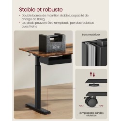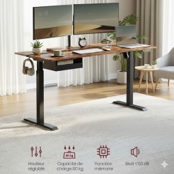Ce bureau est réglable en hauteur en continu entre 72 et 120 cm, Il émet très peu de bruit pendant le réglage (moins de 50 dB). Vous pouvez enregistrer 4 hauteurs prédéfinies pour un réglage rapide.
