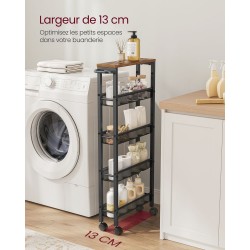 Ce chariot fin d'une largeur de 13 cm est idéal pour les petits espaces. Il vous permet de tirer le meilleur parti des petits espaces dans la cuisine, la salle de bain, le bureau, le salon et la chambre pour ranger.