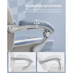 Avec une hauteur réglable de 47 à 57 cm et un dossier inclinable entre 90° et 135°, ce fauteuil de bureau vous permet de trouver la position pour travailler plus efficacement.
