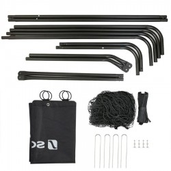 Constituée de tubes en fer traité par poudrage électrostatique et d'un filet en PE, cette cage peut être utilisée dans le jardin, dans un parc ou sur la plage. Les 4 piquets fournis permettent de la stabiliser au sol sans aucun problème.
