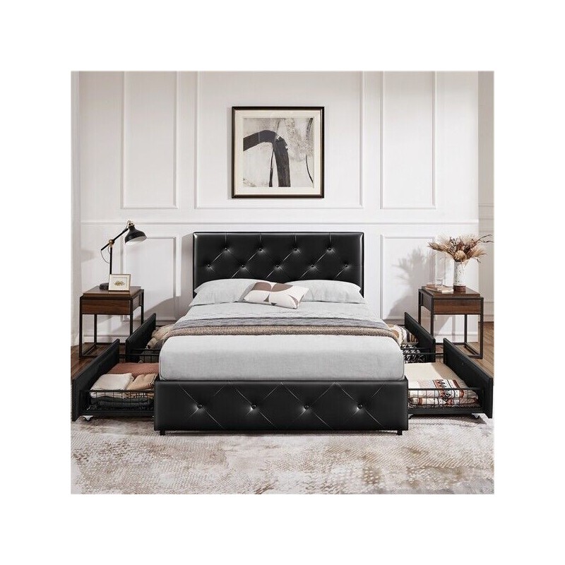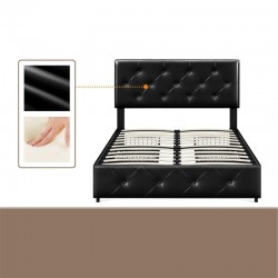 Rempli de mousse haute densité et enveloppé de similicuir souple, ce cadre de lit avec rangement permet un sommeil douillet. Sa tête de lit capitonnée vous procure un repos confortable lorsque vous lisez ou regardez la télé.