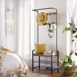 Portemanteau Vestiaire Meuble d’entrée avec Crochets Amovibles, Banc et Étagère à Chaussures