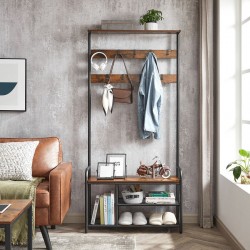 Rangement intelligent : Un meuble d’entrée avec 1 planche en haut, 9 crochets, 2 étagères grillagées et un banc vous permet de poser vos décorations, de suspendre vos vestes, de ranger vos chaussures et de vous asseoir. Parfait !