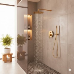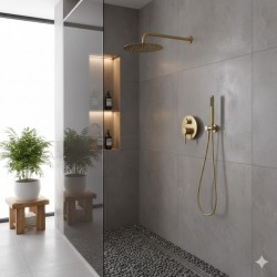 Si vous souhaitez insuffler une atmosphère luxueuse à votre salle de bain sans tomber dans l’excès, cette colonne de douche encastrable or brossé s’impose comme le détail qui fait toute la différence. Sa teinte subtilement satinée capte la lumière avec douceur, loin de l’effet clinquant du doré brillant. Le résultat est un rendu sobre, raffiné et parfaitement équilibré.