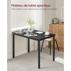 Avec ses dimensions de 70 × 110 cm (P × L), cette table à manger offre un espace confortable pour accueillir jusqu’à 4 personnes. Partagez des repas conviviaux en famille ou entre amis en toute simplicité.