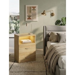 L'aspect bois chic de la table de chevet lui confère un aspect intemporel et élégant qui s'intègre parfaitement à tout type de chambre à coucher. La lampe intégrée est amovible, l'intensité de la lumière peut être réglée et atténuée progressivement. Il est possible de choisir entre une lumière blanche froide ou une lumière blanche chaude.