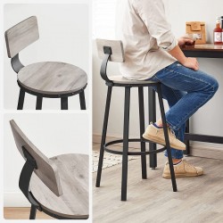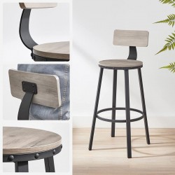 Avec une large assise de 37 cm de diamètre, un dossier confortable et un repose-pieds, ce lot de 4 tabourets hauts vous offre le confort idéal pour passer d'agréables moments autour du comptoir du bar.