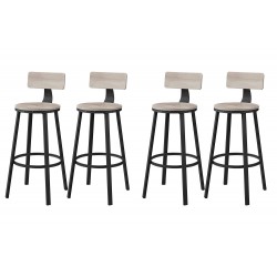 Ces 4 tabourets de bar allient esthétique et qualité. Grâce au cadre en acier épais et aux panneaux d’aggloméré robustes, vous pouvez vous asseoir en toute sécurité et confortablement.